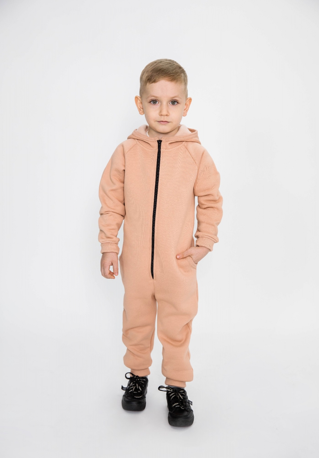 318-К. Комбинезон на молнии с капюшоном, капучино, хлопок 65%, 35% ПЭ, 3 нитка толстовка (начёс) 86,92,98,104