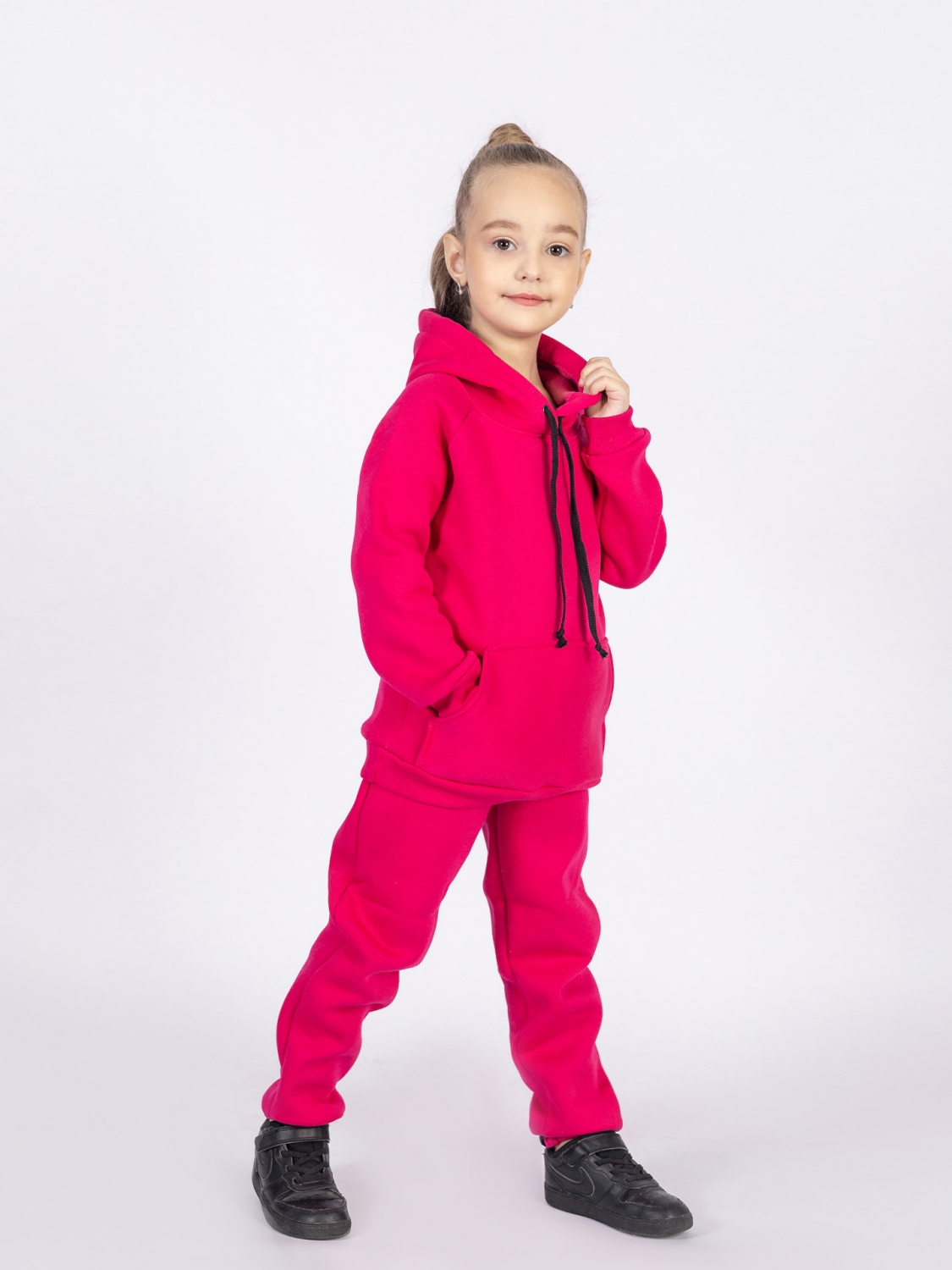 296-Ф. Свитшот с капюшоном + Штаны, хлопок 65%, 35% ПЭ, 3-х нитка (начес) фуксия 122,128,134,140