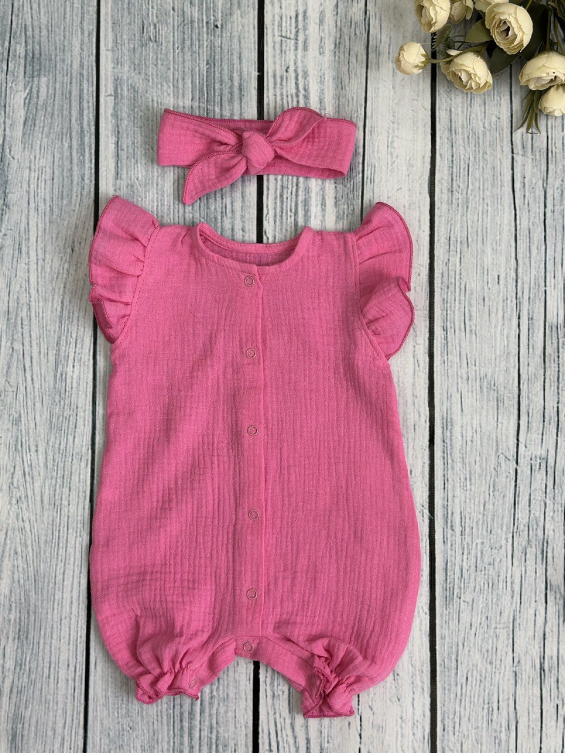 Купить оптом 341-Ф. Песочник с повязкой для девочки из муслина, хлопок 100%, р 62,68,74,80 фуксия во Владивостоке